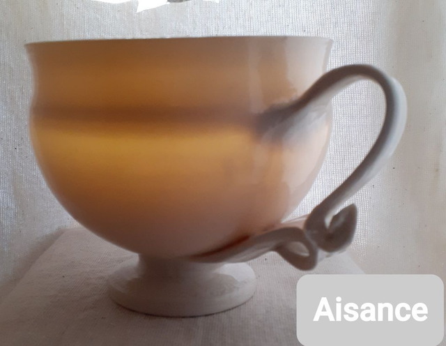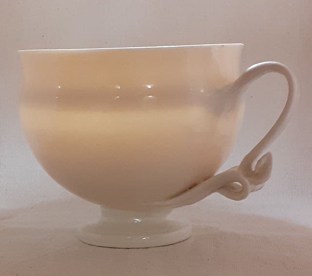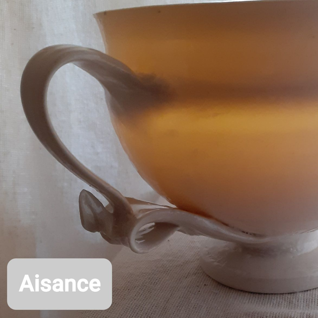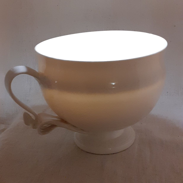 Tasse translucide en porcelaine tourné, à anses tirées à la main.